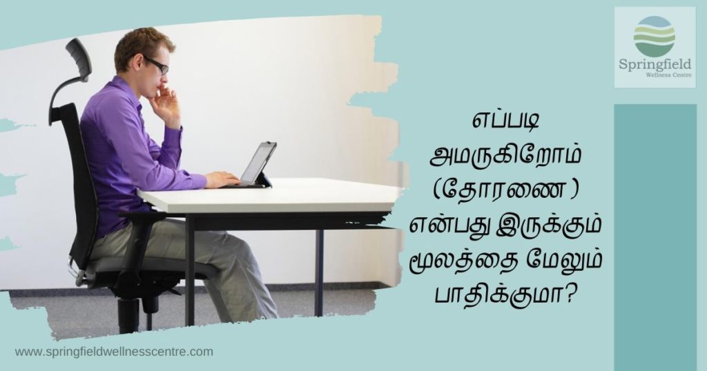 நீங்கள் நிமிர்ந்த நிலையில் அமராதபோது, ஆசனவாய்ப் பகுதிக்கு அழுத்தம் அதிகமாக போகும். நீங்கள் நிமிர்ந்த நிலையில் அமர்ந்திருக்கும்போது, ஆசனவாய்க்கான அழுத்தம் சற்று தளர்ந்திருப்பதை நீங்கள் உணரலாம். மணிக்கணக்கில் நிமிர்ந்த நிலையில் அமர முடியாது என்பதும் கூட உண்மை தான். அதனால்தான் நீங்கள் எழுந்து நின்று சில படிகள் நடந்து அழுத்தத்தை குறைக்க வேண்டும்.